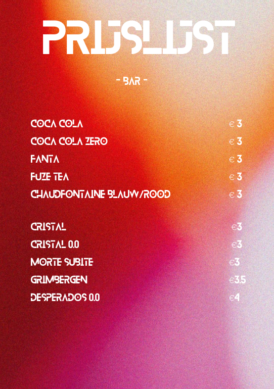 Ruime keuze uit frisdrank, alcoholische dranken zoals bier en kriek, en non-alcoholische opties. Perfect om even bij te tanken en de vibe van het event te voelen.